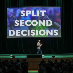 Want ook de sprekers mochten er zijn. Onze hersens werden meermaals gefopt door optische illusies van Paul Smit, neuropsycholoog. Mirjam Spitholt, docent gelukskunde aan de Saxion hogeschool, nam ons mee in zoektocht naar innerlijk geluk. ‘Hoe leg je toch dat negatieve stemmetje in je hoofd het zwijgen op?’ En met een vlijmscherp verhaal ging Bjorn Kuipers, topscheidsrechter en ondernemer, in op samenwerken, vertrouwen en het maken van splitsecond decisions.