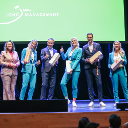 Daarop volgde de 177e ALV van Jong Management. Een vaste kost op het congres, wat nu bol stond van bijzondere momenten. Ontroerend was het afscheid van de pas overleden JM'er, Marcelle Sla, met opvolgend de minuut applaus ter nagedachtenis aan haar. Daarnaast natuurlijk de voorzitterswissel. Na drie prachtige jaren droeg Daan Lammers de voorzittershamer over aan Anouk Dijkstra (30). Zij mocht iets later als kers op de taart met Marijke Roseboom, Bas Janssen en Daan Lammers niet één, twee, maar drie nieuwe ereleden benoemen.