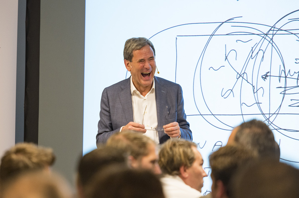Na deze woorden over persoonlijke groei kreeg Jos Burgers het podium. Hij nam de zaal op humorvolle wijze mee in de zoektocht naar zakelijke groei. Eén fan per dag, jouw plek in het weiland, 'sukkelzinnen'; zijn metaforen en methoden zijn ongetwijfeld allemaal bij de borrel na afloop nog uitvoering besproken.